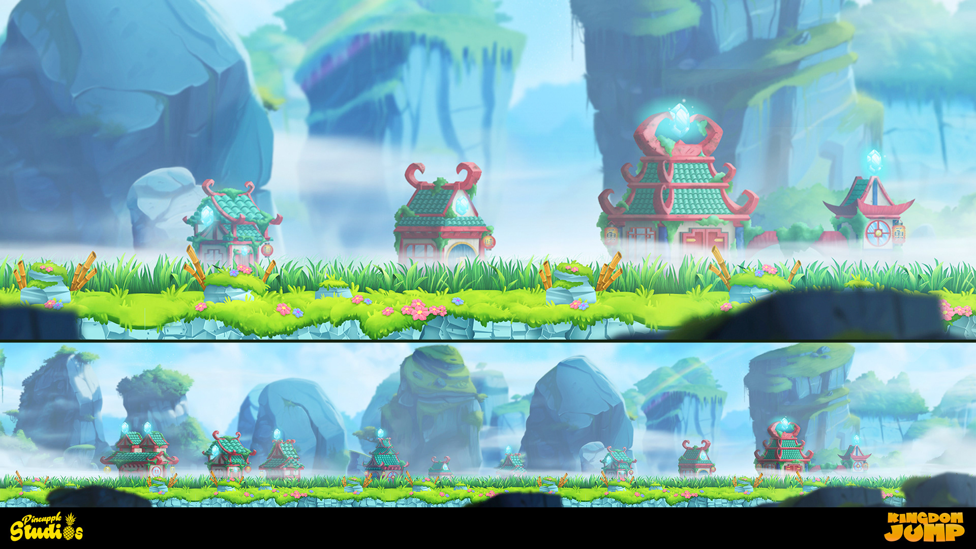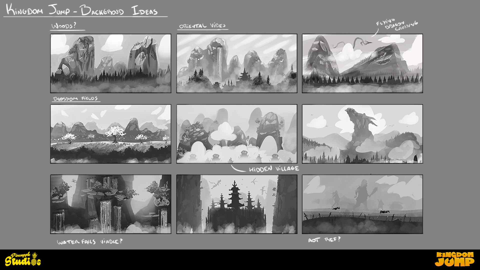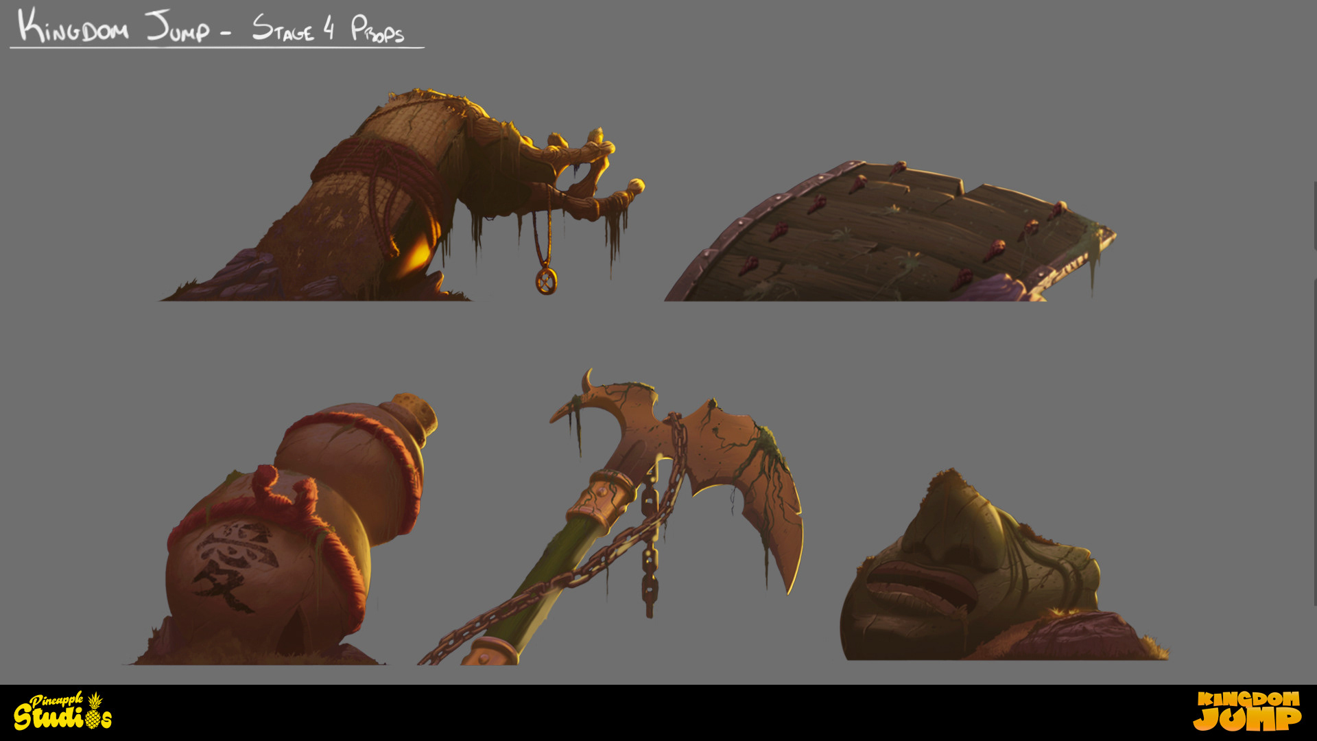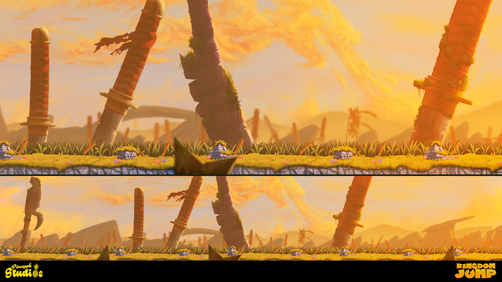 Kingdom Jump é um jogo de plataforma indie desenvolvido pela Pineapple Studios, no qual colaborei ao lado de vários artistas extremamente talentosos (com um agradecimento especial a Frederico Meloni). Atuei como concept artist desde as etapas iniciais de desenvolvimento até o lançamento da versão beta. Ao longo do projeto, contribuí com a criação de ideias e desenvolvimento visual, projetando cenários, props de jogo, splash arts e telas de UI/jogo, além de propor soluções visuais que deram suporte ao mood do jogo e às suas mecânicas.