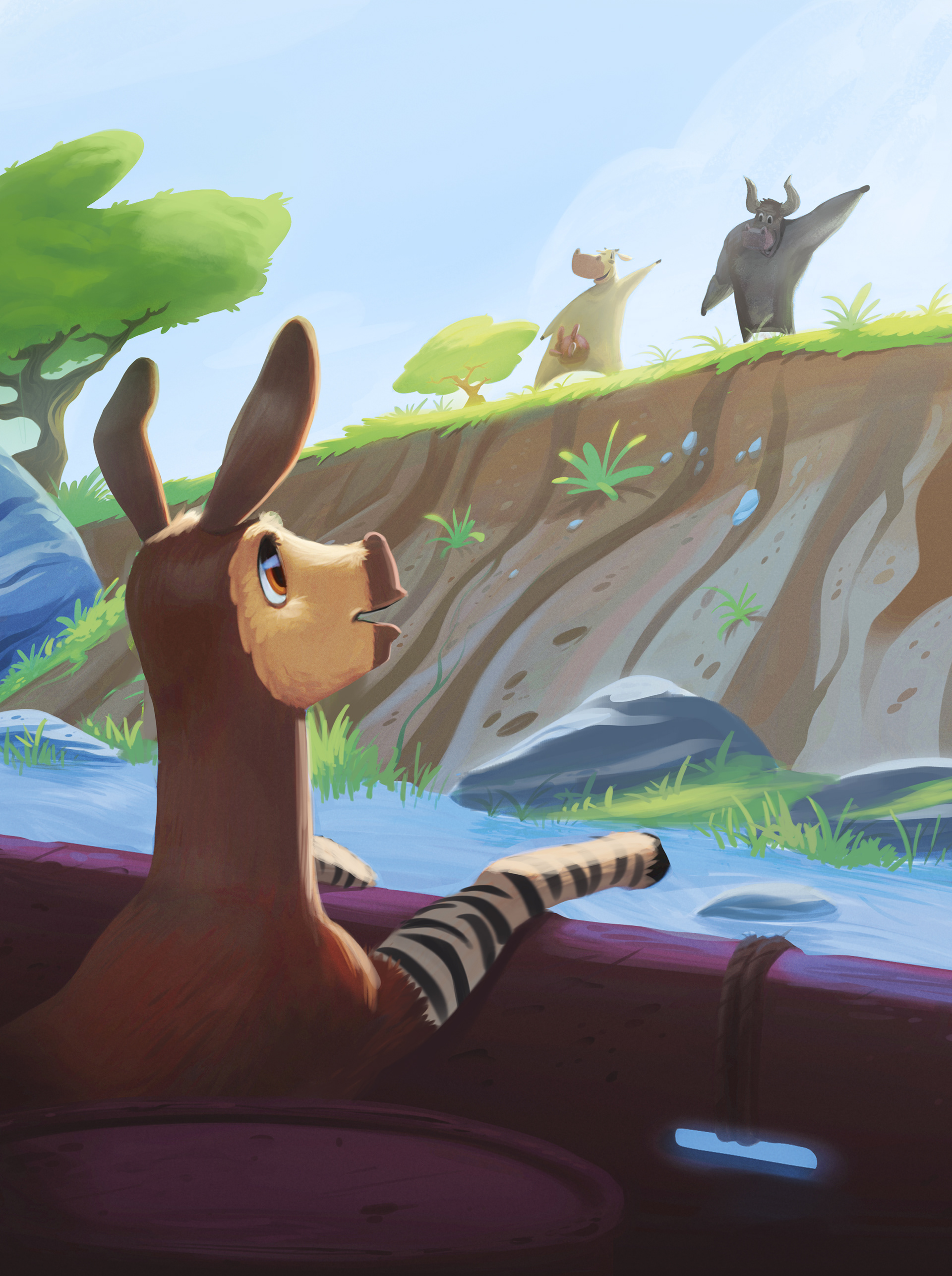 Ilustrar o livro infantil Ocapi, de Adriana Bastos, foi uma experiência muito especial. A história acompanha as aventuras de Ocapi, uma criatura curiosa e divertida — metade zebra, metade cavalo, mas 100% aventureira — enquanto explora o mundo e aprende lições importantes ao encontrar diversos animais exóticos que nunca tinha visto antes.
