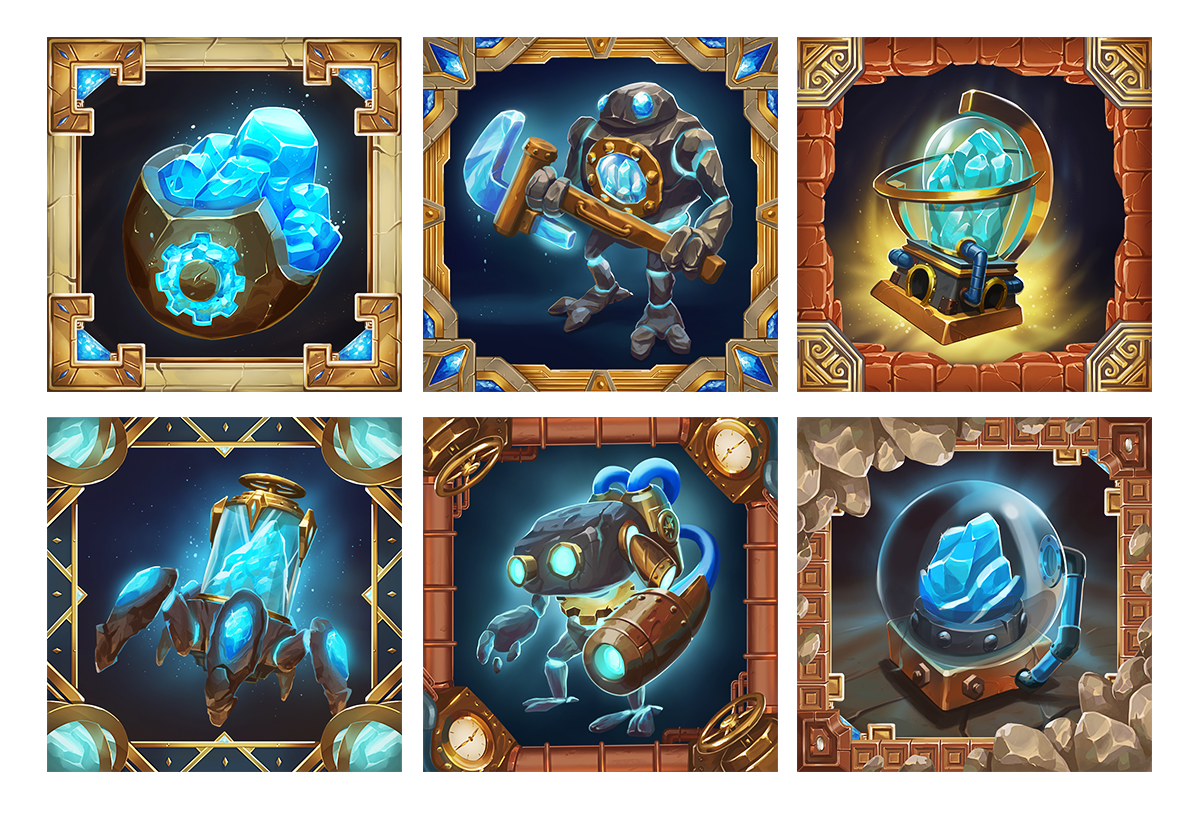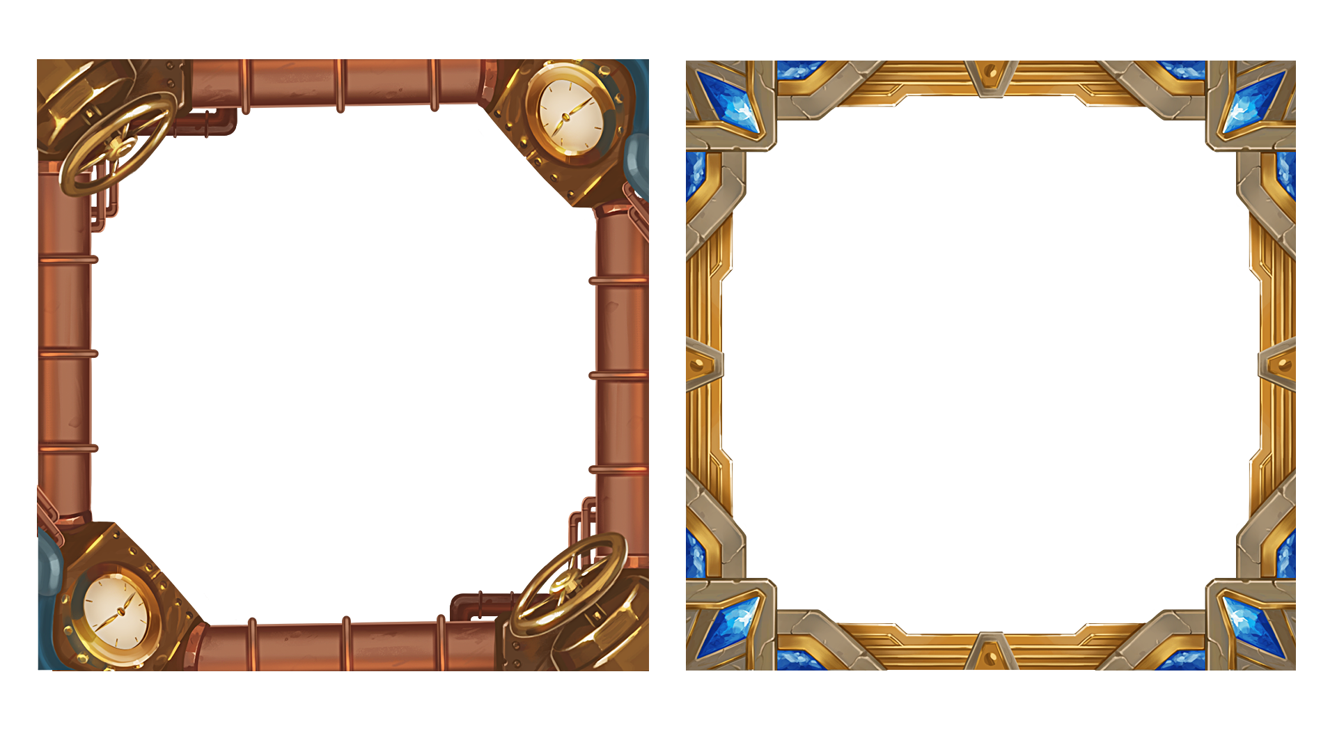 Set of illustrations developed for the indie game Smelogs Playground containing game assets such as frames and avatar art.
